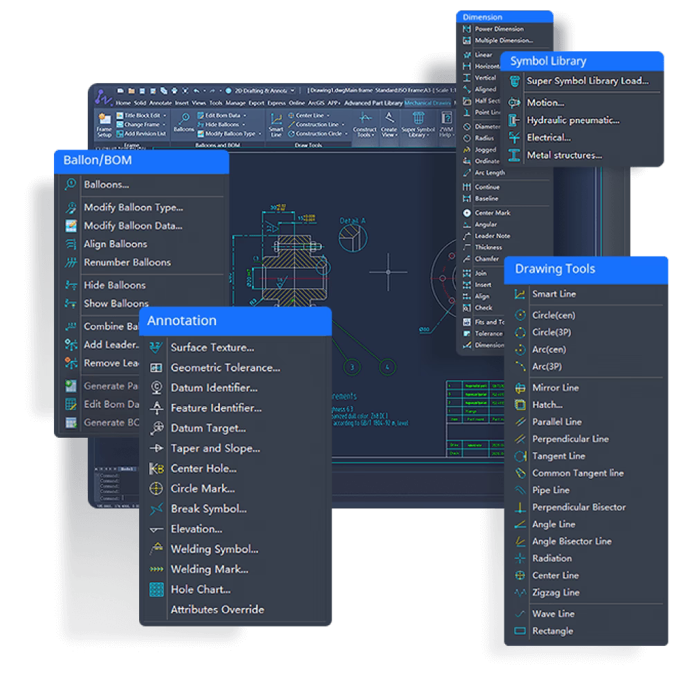 Op basis van het krachtige ZWCAD-platform biedt deze CAD-oplossing engineers de mogelijkheid om snel en efficiënt gestandaardiseerde, hoogwaardige ontwerpen te creëren. Dankzij een uitgebreide bibliotheek van standaardonderdelen, slimme tekentools en andere productiviteitsfuncties stroomlijnt u het ontwerptraject. Bovendien integreert de oplossing moeiteloos met PLM-systemen voor optimaal beheer tijdens de volledige productlevenscyclus.